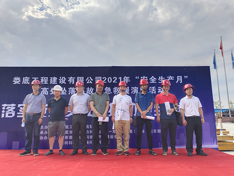 為進一步提高公司安全管理水平,規(guī)范公司安全生產(chǎn)過程的管理工作,本著"安全第一、預防為主、綜合治理"的安全管理方針。 加強建筑工地應對突發(fā)事件的處理能力,提高全員安全意識,切實掌握應急救援的的技能、技巧,讓員工在事故發(fā)生時將傷害減少到最低,同時為響應“學黨史,辦實事”的精神,公司和公司黨支部特組織了一次高處墜落事故應急救援演練活動。婁底經(jīng)開區(qū)住建局童韜先生、李愛民先生、李俊先生、雷海仁先生,建設(shè)單位現(xiàn)場負責人曾彪先生,監(jiān)理單位總監(jiān)柯又華先生,婁底工程建設(shè)有限公司副總經(jīng)理彭洪偉、顏克靈出席了本次演練活動,婁底市生態(tài)電力科技谷A區(qū)一期一標項目部全體人員,公司各在建項目負責人、關(guān)鍵崗位人員參加了此次演練活動。