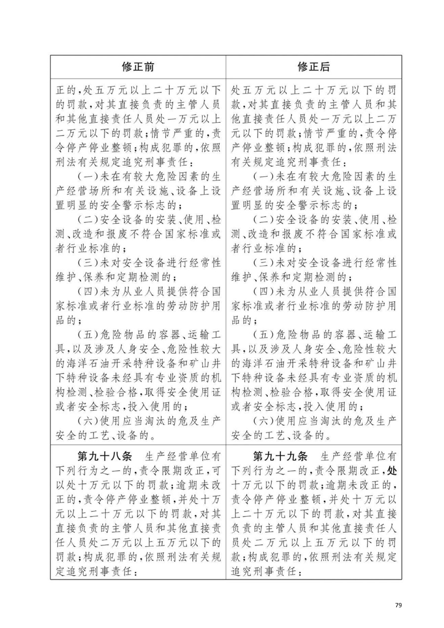 第九十八條生產經營單位有下列行為之一的,責令停止建設或者停產停業(yè)整頓,限期改正,并處十萬元以上五十萬元以下的罰款,對其直接負責的主管人員和其他直接責任人員處二萬元以上五萬元以下的罰款;逾期未改正的,處五十萬元以上一百萬元以下的罰款,對其直接負責的主管人員和其他直接責任人員處五萬元以上十萬元以下的罰款;構成犯罪的,依照刑法有關規(guī)定追究刑事責任: