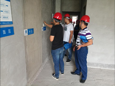 觀摩代表們來(lái)到施工現(xiàn)場(chǎng),認(rèn)真觀看了企業(yè)及項(xiàng)目簡(jiǎn)介視頻、機(jī)噴砂漿工藝視頻、常見質(zhì)量問題治理的模型示范樣板區(qū)、工程實(shí)體質(zhì)量樣板區(qū)等。輕質(zhì)混凝土砌塊砌筑、構(gòu)造柱及窗臺(tái)壓頂留置、門窗洞口弱框架、內(nèi)外墻機(jī)噴抹灰、外墻內(nèi)保溫、屋面防水、水電安裝等工程的每道環(huán)節(jié)、工藝標(biāo)準(zhǔn)都用標(biāo)牌標(biāo)注得清清楚楚。并了解到我司在施工前期的創(chuàng)優(yōu)策劃,施工過程中堅(jiān)持“事前交底、事中控制、事后驗(yàn)收”等一些好的管理方法。觀摩代表們紛紛表示,此次觀摩為進(jìn)一步深化工程常見質(zhì)量問題防治、推進(jìn)質(zhì)量標(biāo)準(zhǔn)化、工程創(chuàng)優(yōu)積累了寶貴經(jīng)驗(yàn)。我司主要負(fù)責(zé)人、技術(shù)人員、講解員與觀摩代表們分享了在工程質(zhì)量常見問題專項(xiàng)治理等方面一些好的工作經(jīng)驗(yàn)和做法。