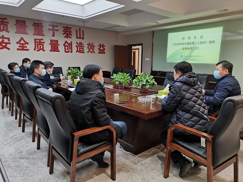2月20日下午,市住房和城鄉(xiāng)建設(shè)局(人防辦)局長(zhǎng)黃大生一行來(lái)我公司指導(dǎo)復(fù)工復(fù)產(chǎn)工作。黃局長(zhǎng)對(duì)我公司前段時(shí)間的疫情防控工作進(jìn)行了充分的肯定,要求公司按照市委政府的文件精神,采取有力措施,精心組織各施工項(xiàng)目全面復(fù)工。黃局長(zhǎng)要求公司2月底項(xiàng)目開(kāi)工率要達(dá)到全省平均水平,3月份各項(xiàng)目要全面復(fù)工,公司要確保全年的經(jīng)濟(jì)發(fā)展目標(biāo)不變。公司董事長(zhǎng)張愛(ài)慧代表公司對(duì)黃局長(zhǎng)一行在百忙之中來(lái)公司指導(dǎo)復(fù)工復(fù)產(chǎn)工作表示感謝并作了匯報(bào)發(fā)言。公司總經(jīng)理胡勁、總工程師彭洪偉、副總經(jīng)理顏克靈等參加了匯報(bào)會(huì)。