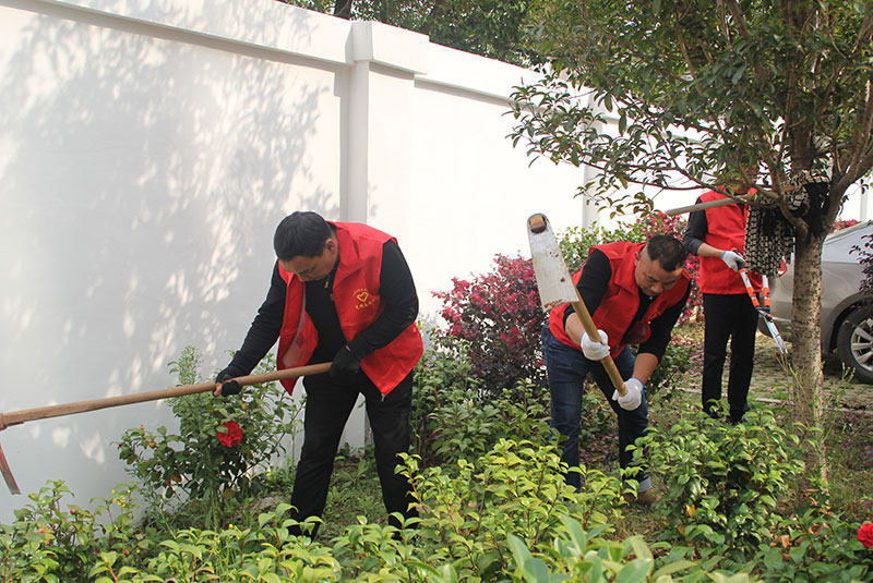 活動(dòng)現(xiàn)場(chǎng),志愿者們身穿紅馬甲化身“保潔”清潔公路、撿綠化帶里的垃圾;化身“園林技師”修剪綠植、施肥、澆水。