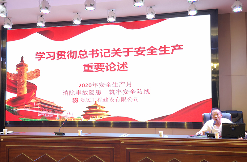 為貫徹《湖南省住房和城鄉(xiāng)建設(shè)廳關(guān)于開展2020年建筑施工“安全生產(chǎn)月”和“安全生產(chǎn)三湘行”活動(dòng)的通知》(湘建建函[2020]69號(hào))、《婁底市住房和城鄉(xiāng)建設(shè)局(市人民防空辦公室)安全生產(chǎn)委員會(huì)關(guān)于開展2020年建筑施工“安全生產(chǎn)月”活動(dòng)的通知》(婁建安委發(fā)[2020]5號(hào))要求,深入學(xué)習(xí)貫徹習(xí)近平總書記關(guān)于安全生產(chǎn)重要論述,牢固樹立安全發(fā)展理念,堅(jiān)持“安全第一、預(yù)防為主、綜合治理”的安全總方針,進(jìn)一步加強(qiáng)公司安全生產(chǎn)管理工作,營造安全生產(chǎn)良好氛圍,公司于2020年6月10日19點(diǎn)組織各部門和項(xiàng)目部人員在會(huì)議室舉行以“消除事故隱患,筑牢安全防線”為主題的“安全生產(chǎn)月”活動(dòng)宣貫會(huì)。會(huì)議由總工程師李偉主持,公司總經(jīng)理胡勁、副總經(jīng)理彭洪偉、顏克靈出席了本次會(huì)議并講話。