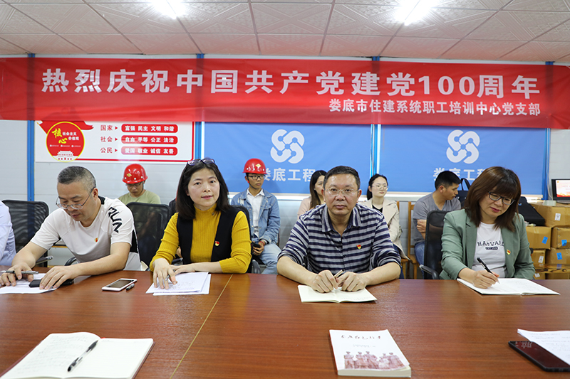 2021年5月25日下午,為慶祝中國(guó)共產(chǎn)黨成立100周年,婁底市住建系統(tǒng)培訓(xùn)中心黨支部來到婁底工程建設(shè)有限公司高溪社區(qū)城中村改造工程一期EPC總承包項(xiàng)目部,和項(xiàng)目部臨時(shí)黨支部聯(lián)合開展“憶崢嶸歲月,頌百年華誕”的主題黨日活動(dòng)。2個(gè)支部共有18名黨員參加,其他項(xiàng)目部現(xiàn)場(chǎng)管理人員和工友代表共有30多人參加活動(dòng)。